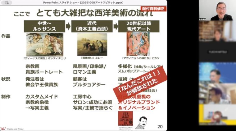 朝活永井塾 99回「ビジネスと人生を豊かにする創造力の本質をアートから学ぼう 」を行いました